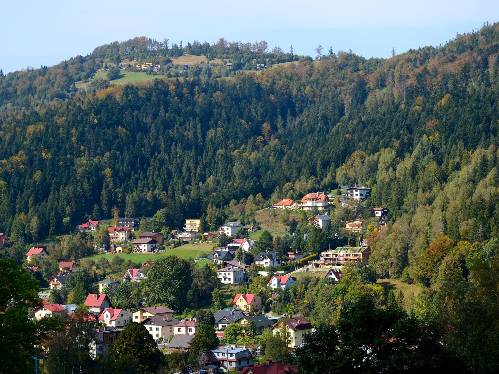 Panorama Szczyrku jesienią – widok z górskiej polany